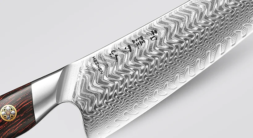 This process also plays a crucial role in achieving the desired bevel structure and revealing the original color of the steel. The initial polishing is carried out using a water mill, followed by fine polishing with a rubber wheel, resulting in a glossy knife face. Various polishing techniques, such as sanding, mirror light, and bright light, are employed to achieve different effects and obtain the distinctive patterns found on Damascus kitchen knives.